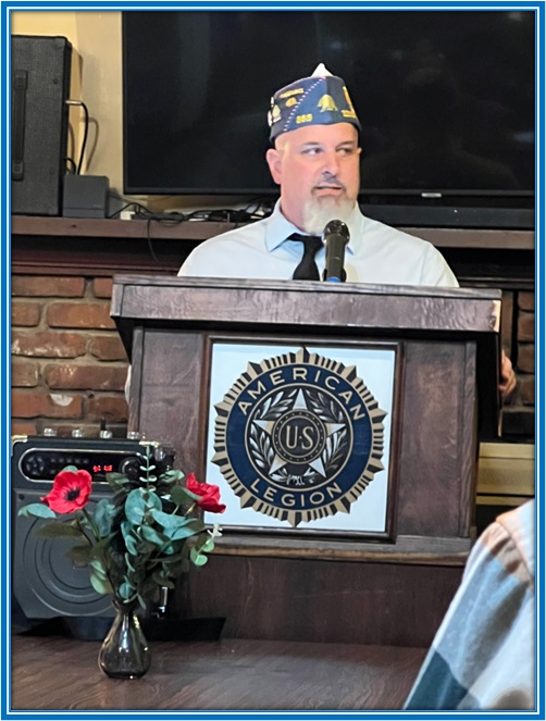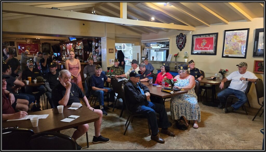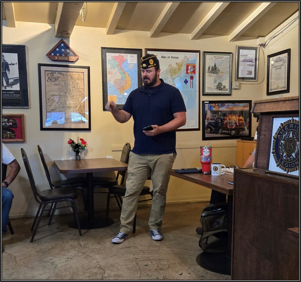 1st Vice Commander Tom Moore updated the membership drive. He has notified several members via email and regular mail of dues. Membership stands at 88.86%. If you have not paid your dues, please stop by and pay up, or go to the website and do it there. Thank You.