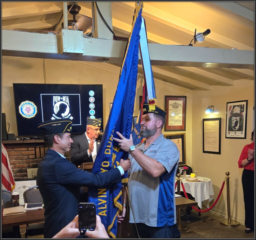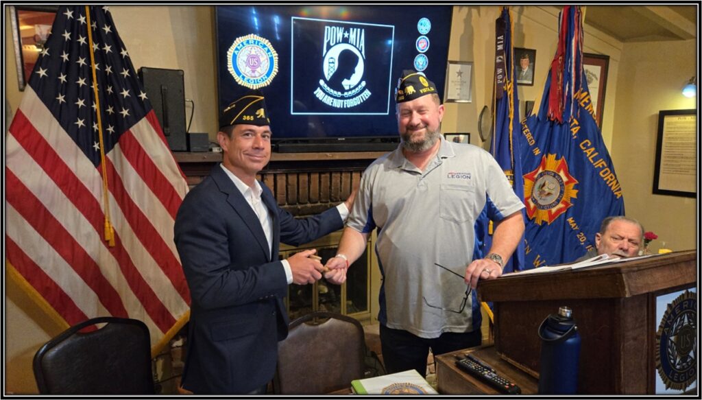 American Legion Post 365 and SAL Squadron 365 held their Installation for 2025-26 Incoming Officers at the General Meeting on Saturday June 21st. Conducting the ceremony was Installing Officer Christopher Yates, Past District 22 and Post 365 Commander.Outgoing Commander Brad Sakemi passes the American Legion Colors to Incoming Commander Tom Moore.