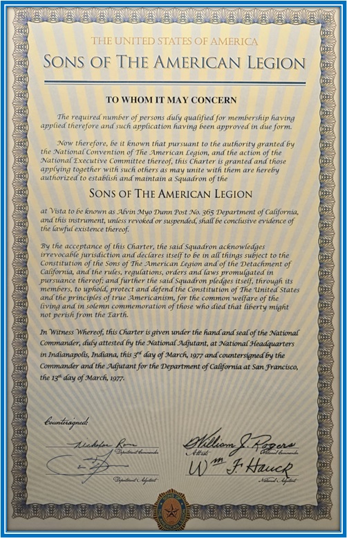SONS of the American Legion Squadron 365 Charter. Home At Last!