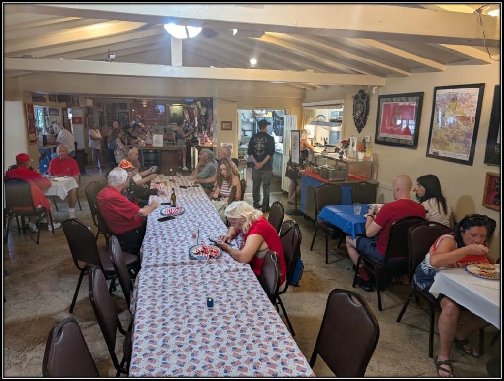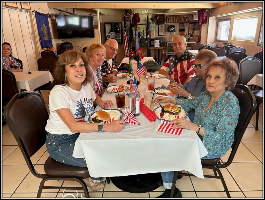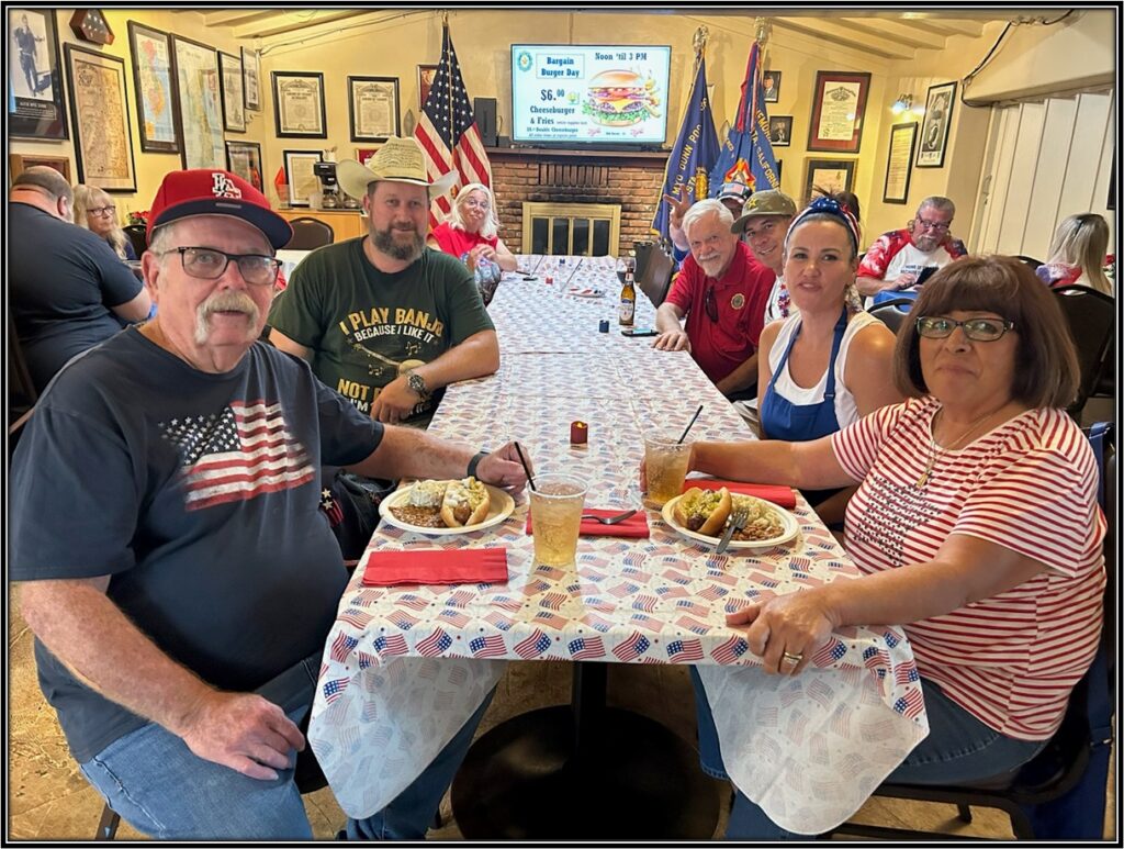 Thanks to all those who celebrated Independence Day at the Post. Free Burgers and Dogs – and the hit of the Day was Karen’s home made Potato Salad and beans.