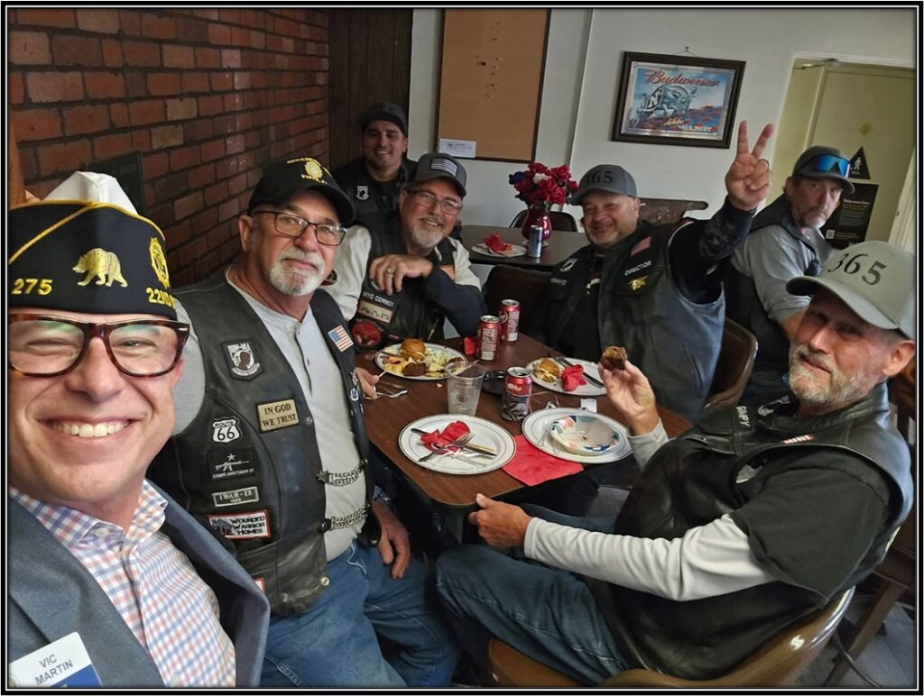 District 22 Commander Vic Martin (L), shares some time with members of American Legon Riders 365 who attended the event.