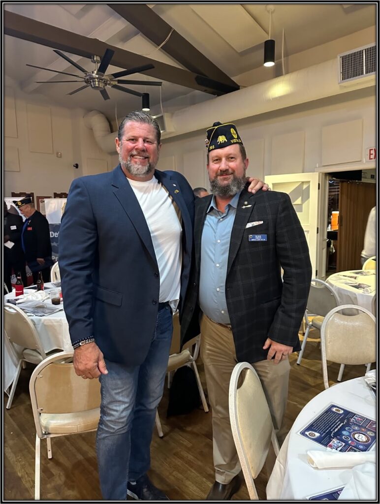 Dave DesRocher former Seattle Seahawks offensive lineman and American Legion Post 365 Commander Tom Moore at banquet. Dave has a nonprofit called 1st and Goal that supports veterans.