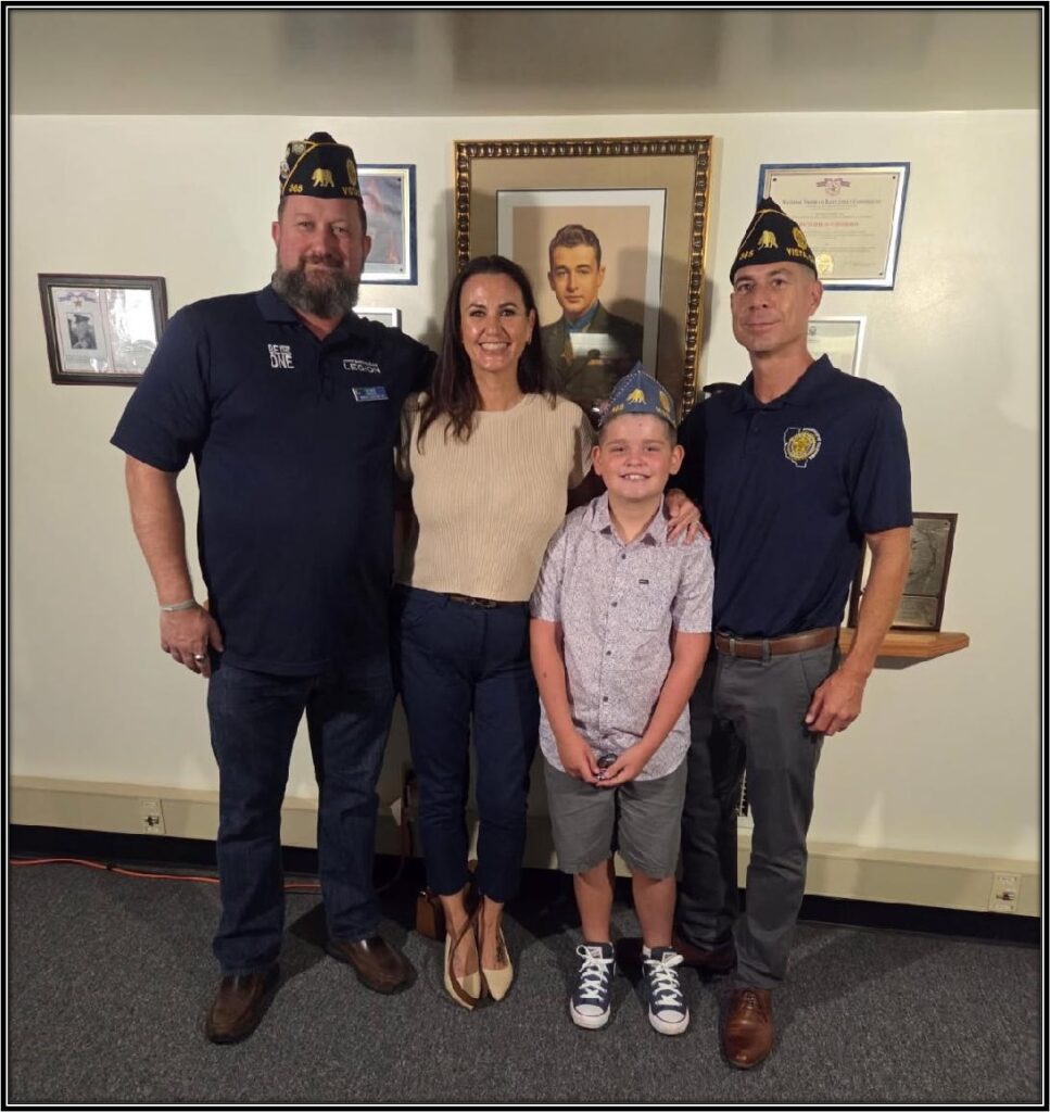 (L-R): Post 365 Commander Tom Moore, Post 365 Auxiliary 1st Vice President Mandy Sakemi, Nolan Sakemi and Jr. Past Commander Brad Sakemi attended the ceremony.